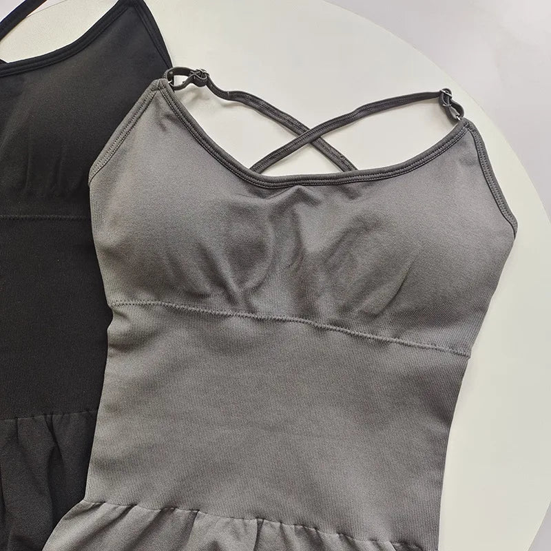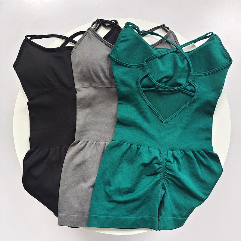 Sexy Seamless Peach Hip Yoga Jumpsuit - Quick-Dry, Stretchy Knit Fabric, Removable Pads, Striped Design, Slim Fit for Wome